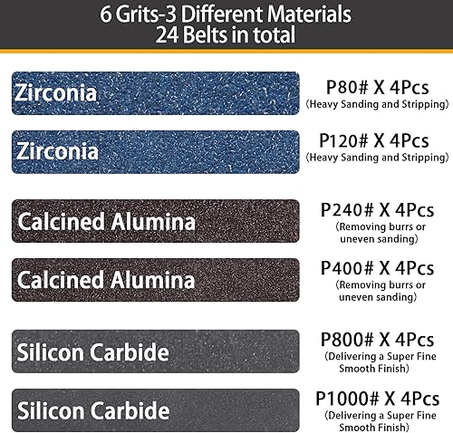 Sruhrak Messerschärfer Schleifbänder 19 X 305 mm-24 Stück Ersatz Schleifband Set für Ken Onion Edition Messerschärfer, 4X 80/120/240/400/800/1000 Grits Gewebe-Schleifband