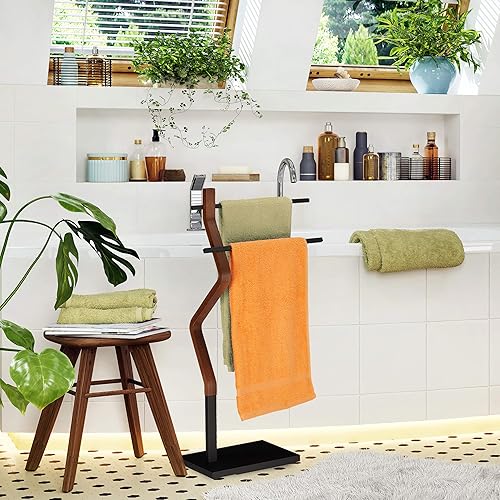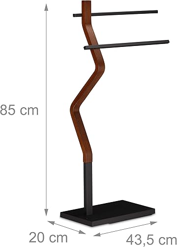 Relaxdays Handtuchhalter stehend, Handtuchständer, 2 Stangen, für Hand- & Geschirrtücher, Holz & Metall, schwarz/braun, 1 Stück