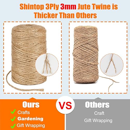 100M Juteschnur, 3mm Juteband Natur Braun Paketschnur für Garten Kordel, DIY Kunstgewerbe Geschenkverpackungen Deko(3-Lagig)