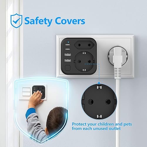 Doppelstecker für Steckdose,JSVER Steckdosenleiste mit USB 2Fach Steckdosenadapter(3680W 16A) mit 2 USB A und 2 USB C(5V/3.4A) Mehrfachstecker für Steckdose mit Schalter para iPad,iPhone Tablets
