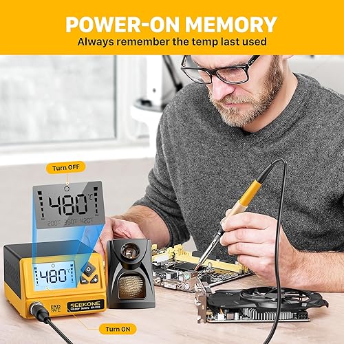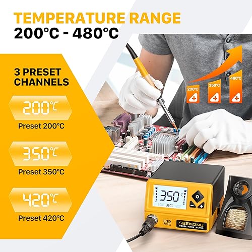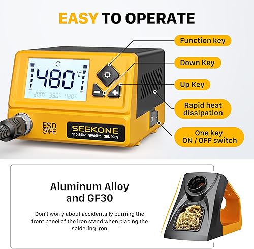 SEEKONE Lötstation 60W, Profi Lötkolben Einstellbare Temperatur 200℃-480℃ mit LCD Displayanzeige, Digitale Lötkolbenstation mit 5 Lötspitzen, °C/°F Umrechnung, Standby Funktion, Power-On Speicher