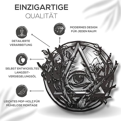KUINEA Allsehendes Auge Wanddeko I Wanddeko Holz [Farbe Anthrazit] Wand Deko I Deko I Wanddekoration für Zuhause, Büro, Schlafzimmer, Wohnzimmer und Küche I Wanddeko Wohnzimmer I Wandbild I Wandbilder