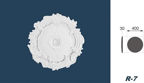 MARBET DESIGN Stuckrosette R-07 Ø 40cm EPS Styropor - Deckenrosette, Zierelement, Stuck (weiß) Wanddeko Wohnzimmer Decke Polystyrol rund
