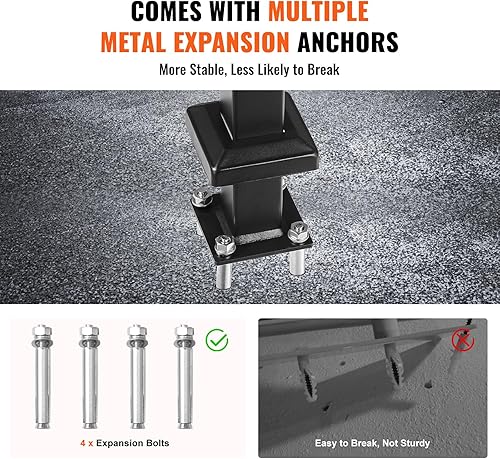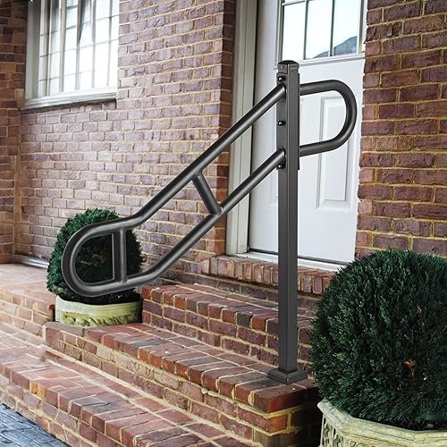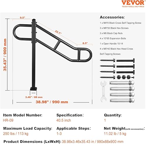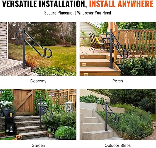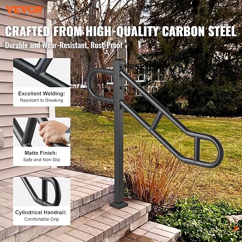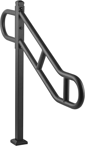 VEVOR Handlauf mit einem Pfosten für 1–3 Stufen im Außenbereich, 40,5' L x 35,4' H gebogener Treppenhandlauf aus Metall, bodenmontiertes Treppengeländer aus Karbonstahl