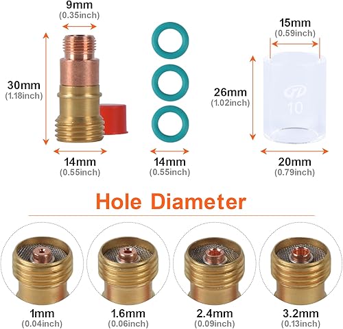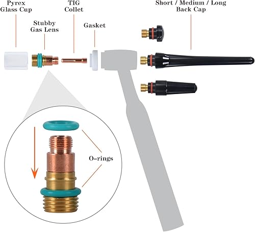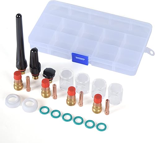 SPDYCESS 23 Stück Wig Schweißen Verbrauchsmaterial Zubehör Pyrex-Glasbecher Wig Rückkappe O-Ringe Stubby Gaslinse Verschleißteile Set mit Lagerung Kasten für WP-17/18/26