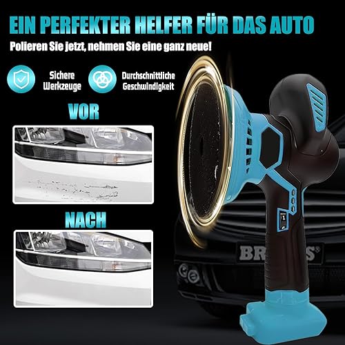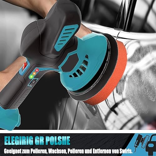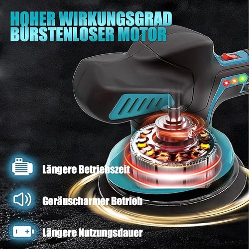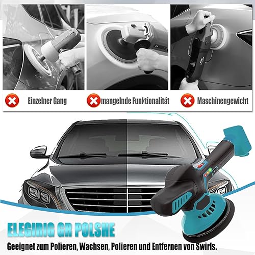 Akku Poliermaschine, Bürstenlos mit 2x5500mAh Akku und Ladegerät, 21V 145mm und 23PCS Anhänge, Polieren Pad zum Entfernen von Farbe und Mörtel , zum Polieren, Schleifen