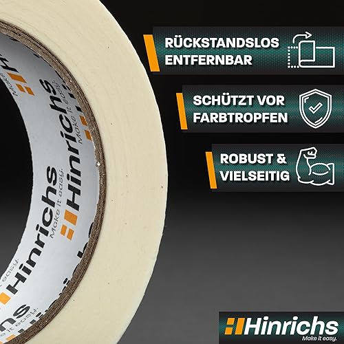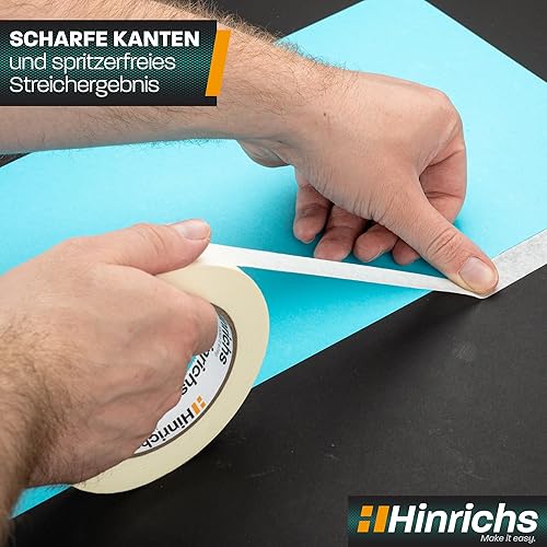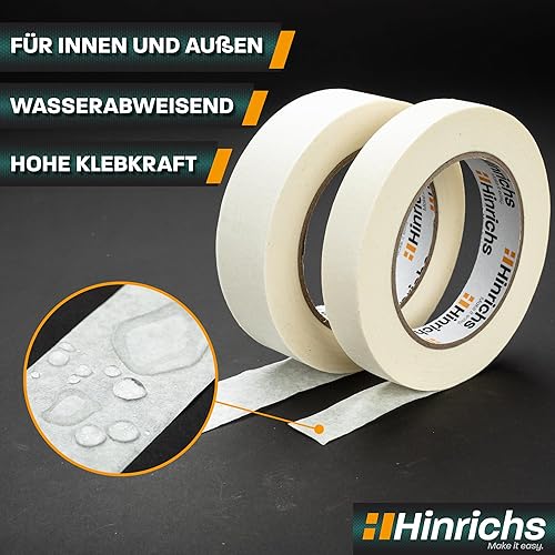 Hinrichs Kreppband 7x - Abklebeband 6 Rollen 50m x 30mm + 1 Rolle 50m x 20mm - Maler Klebeband zum Streichen und Lackieren - Abdeckband für Malerarbeiten - Malerkrepp für Renovierung & Auto