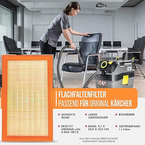 2 x Flachfaltenfilter Filter für original Kärcher NT 25/1 Ap, NT 35/1 Ap, NT 35/1, NT 45/1, NT 55/1, NT 361, NT 561, NT 611 Tact, Te, M, Eco ersetzt original 6.904-367.0 (2 Stück)
