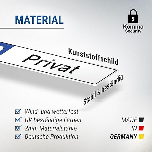 Komma Security Parkplatz Schild Privat 40 x 10 cm Hinweisschild Privatparkplatz Privatgrundstück Parkplatzschild Reserviert - Parkplatz freihalten vermietet Parkverbot Falschparker