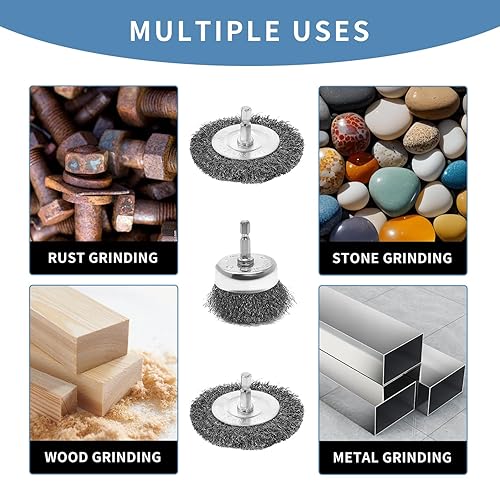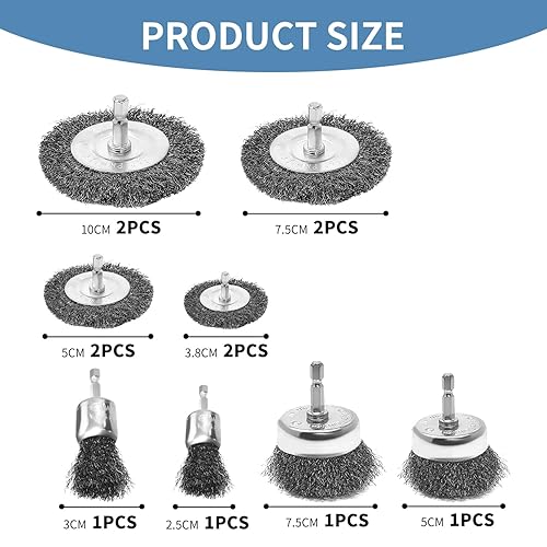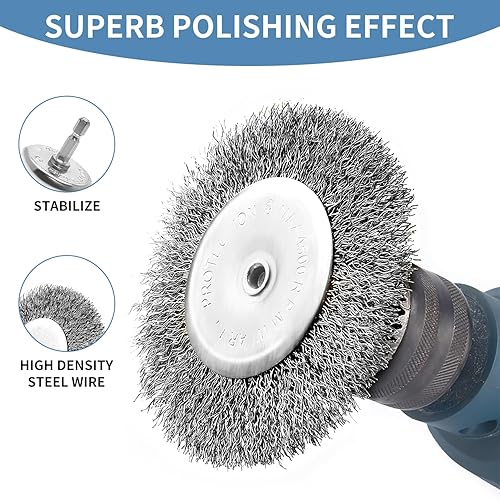 12 Stück Drahtbürste Bohrmaschine Set,6mm Drahtbürste Akkuschrauber,mit Sechskantstange,Metallbürsten,zum Polieren und Schleifen.