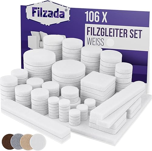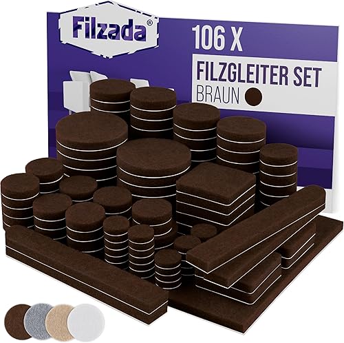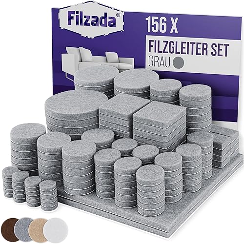 Filzada® Filzgleiter Selbstklebend Set 106 Stück (Eckig und Rund) - Grau - Profi Möbelgleiter Filz Mit Idealer Klebkraft