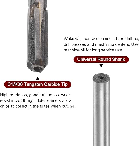 sourcing map Spannen Reibahle 5.2mm H7 C1/K30 Hartmetall Spitze Präzision Gerade Flöten Rund Schaft Drehbank Maschinen Fräser