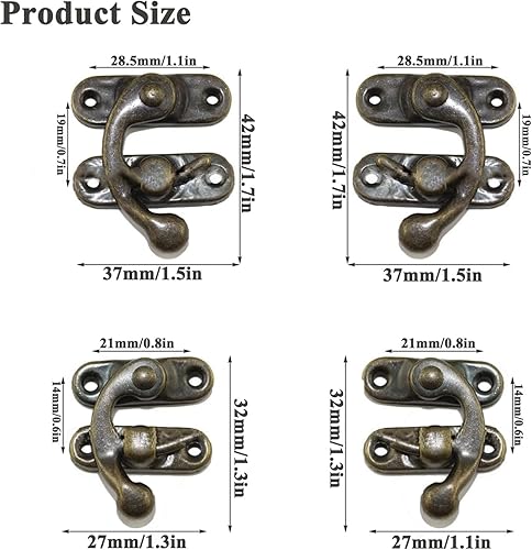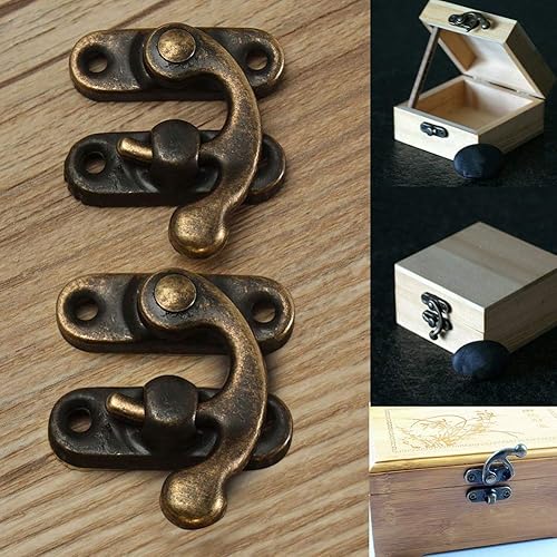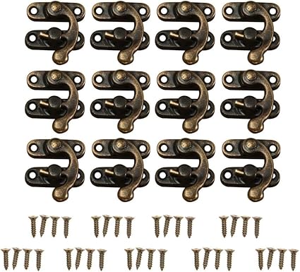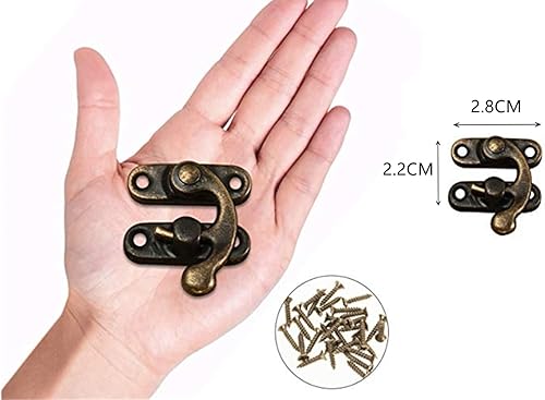 12 Stücke Antike Messing Dekorative Haspe Schmuck Holzkiste Wein Geschenk verschluss mit Schrauben für Schieber Truhen Kisten Dosen(Bronze/Linker Haken)
