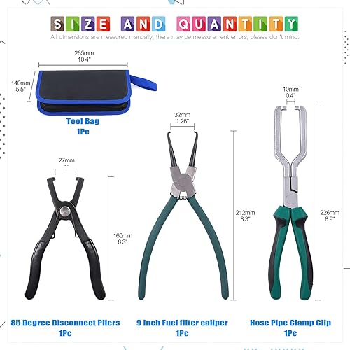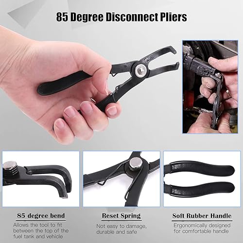 Glarks 3Pcs Fuel Line Pliers Set, 9 Inch Fuel Filter Caliper Hose Pipe Clamp Clip and 80 Degree Disconnect Pliers Set for Auto Maintenance