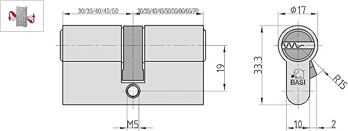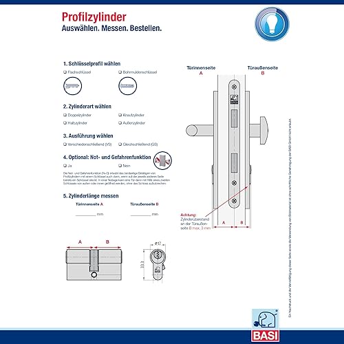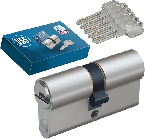 BASI | V55 Profil-Doppelzylinder 30/35 mm | Not- und Gefahrenfunktion | Zylinderschloss | 5 Wendeschlüssel & Codekarte | Bohrmuldenschlüssel | Pickingschutz & Anbohrschutz | Verschiedenschließend