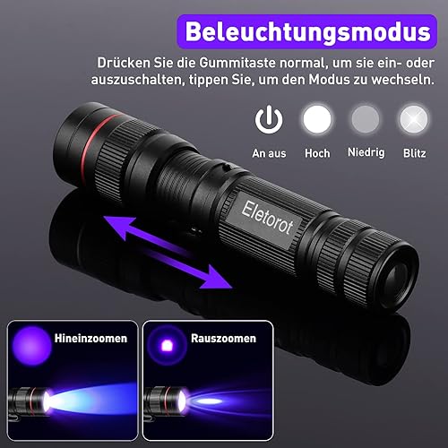 Eletorot UV Taschenlampe LED Handlampe Schwarzlicht, Detektor für Falsche Papiergeld oder Eingetrocknete Urin Flecken