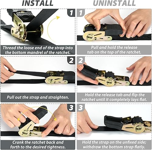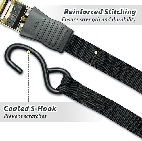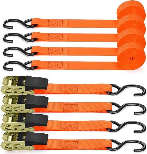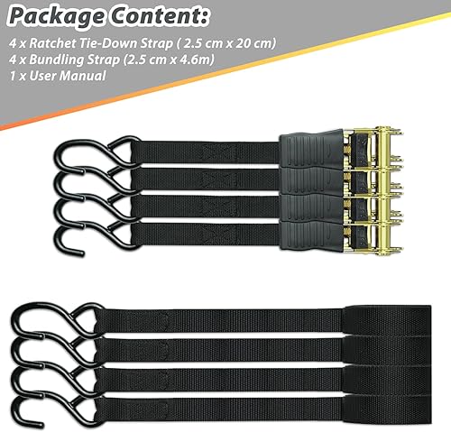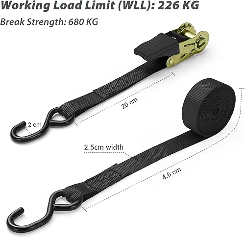 Spanngurte mit Ratsche 2 teilig zweiteilig, Ohuhu 4 Stück 680Kg 4,6m Ratschengurte Zurrgurte schwarz 25mm mit S-Haken aus Beschichtetem Metall, Zurrgurte Spanngurte Ratschengurte Ratschen Schloss