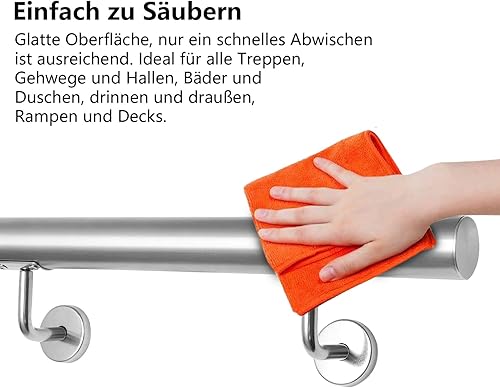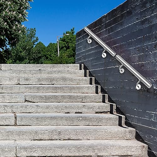 Ikodm Edelstahl Handlauf Treppengeländer Geländer Wandhandlauf Wand Treppe 150 cm Ø 42mm für Außen & Innen mit Wandhalterungen, Montagematerial