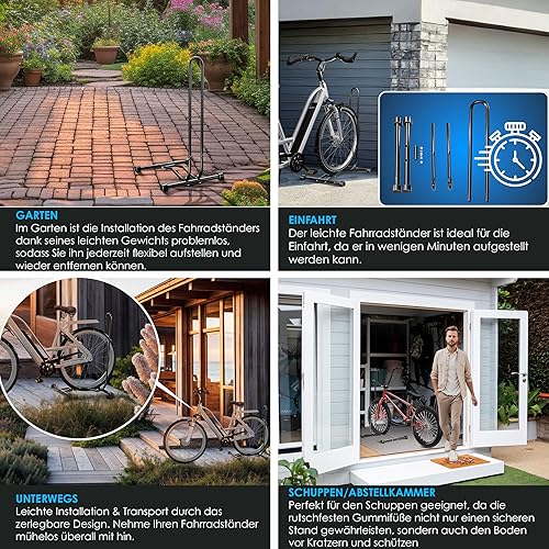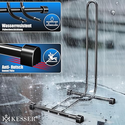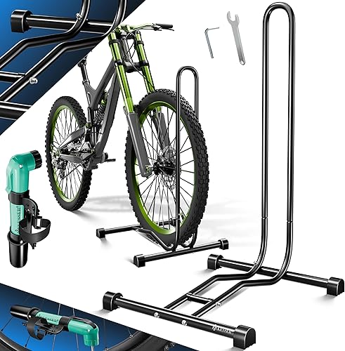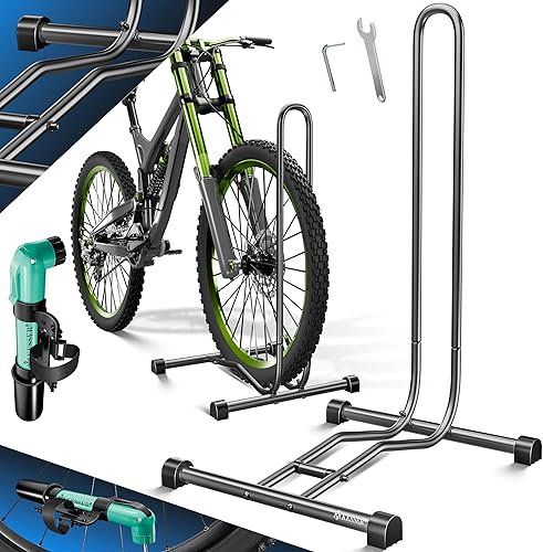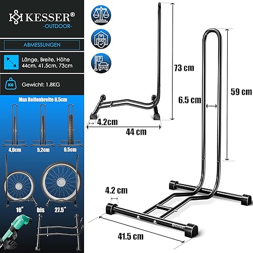 KESSER® Fahrradständer Boden einzeln für Mountainbike, E-Bike, Citybike, Rennrad, MTB | Fahrrad Montageständer | Freistehender Fahrradhalter Ständer Eisen | Reifenbreite bis 65mm | Inkl. Luftpumpe