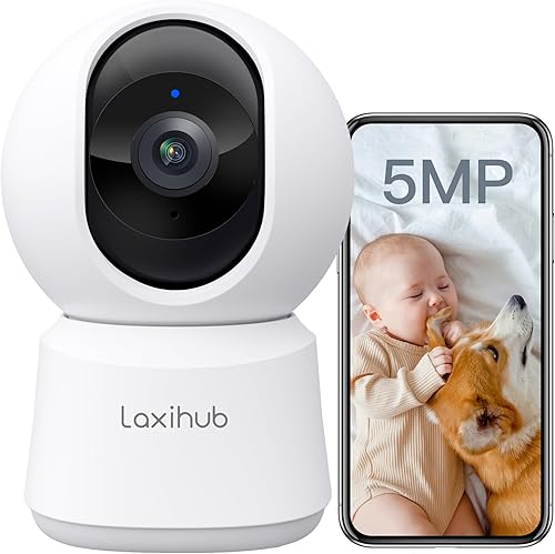 LAXIHUB 5MP Hundekamera mit App Überwachungskamera Innen Baby, 2.4G/5GHz Dual-Band WLAN Haustier Kamera, AI Bewegungserkennung Pet Security Camera Auto-Tracking, Pan/Tilt, 2-Wege-Audio, Alexa