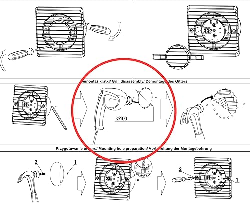 Virone Badlüfter 100mm Wandmontage, Geräuschloser Betrieb Kabellänge ca. 1,3 m (mit Schalter)