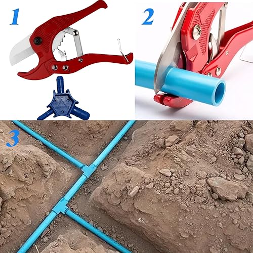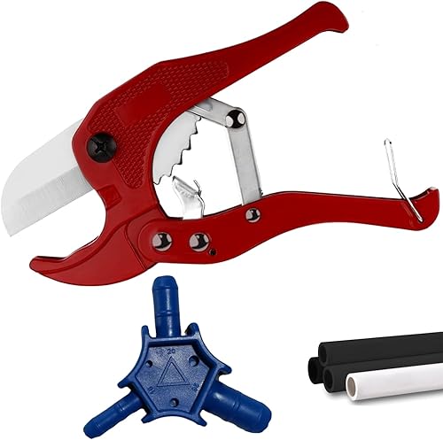 Amazleer Premium Werkzeugset für Verbundrohr, Rohrschneider für PVC Kunststoff Mehrschichtverbundrohr bis 42 mm, Kalibrierer 16, 20, 26 mm (Rot)