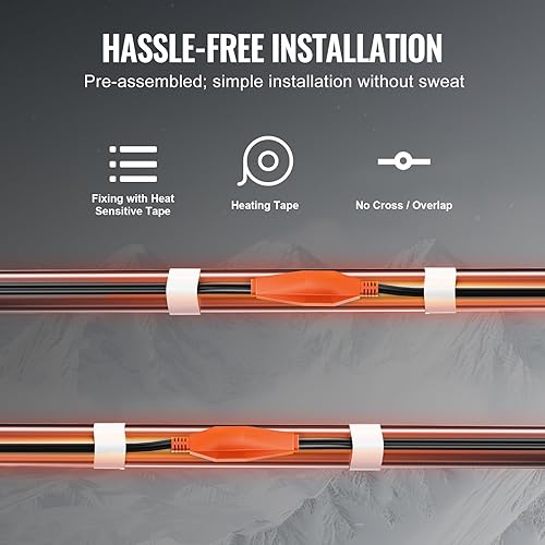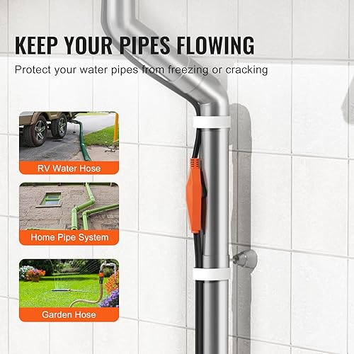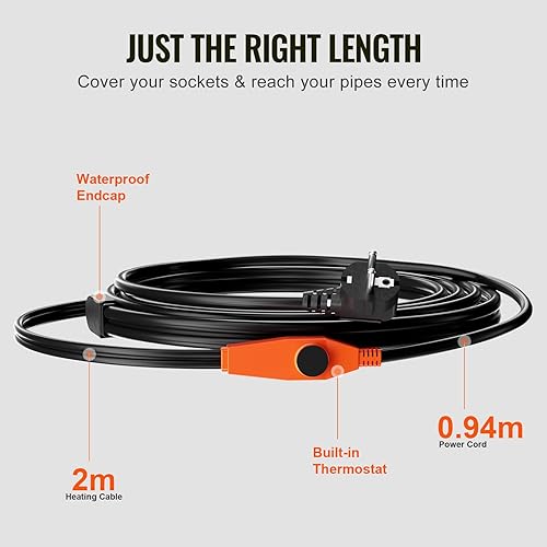 VEVOR Selbstregulierendes Rohrheizkabel, 5,5 m, 16,4 W/m, Heizkabel Frostschutz, Wasserrohr-Heizkabel mit eingebautem Thermostat schützt PVC-Schläuche, Metall- & Kunststoffrohre vor dem Einfrieren