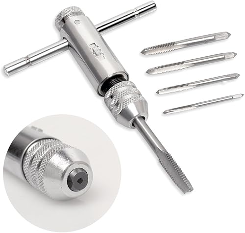 Gewindeschneidsatz,Gewindebohrer, Handgewindebohrer Satz,M3,M4,M5,M6,M8 Hand Gewindeschneider Set für Außengewinde,Gewindebohrer mit Verstellbaren T-Griff Windeisen