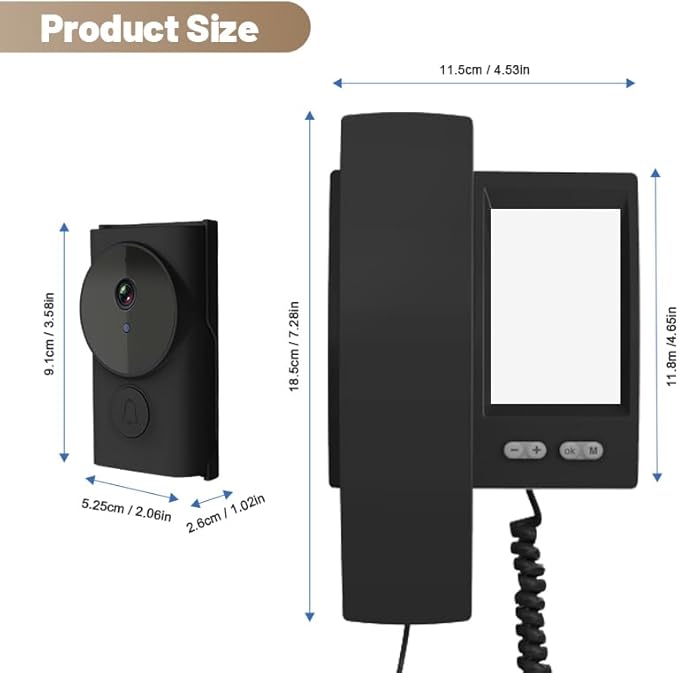 TKMARS Kabellose Türklingel mit Kamera und Bildschirm, Video-Türsprechanlage ohne WLAN, für doppelte Kommunikation, Video-Türsprechanlage ohne App, Video-Türsprechanlage, Nachtsicht, kostenlose