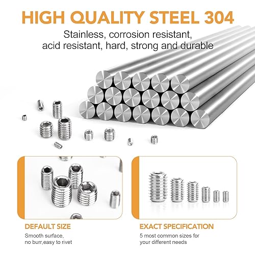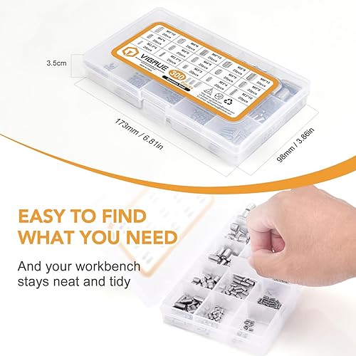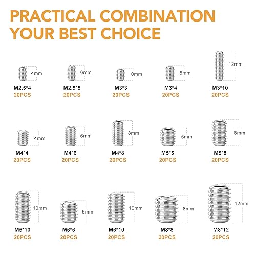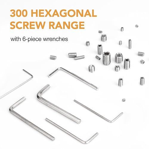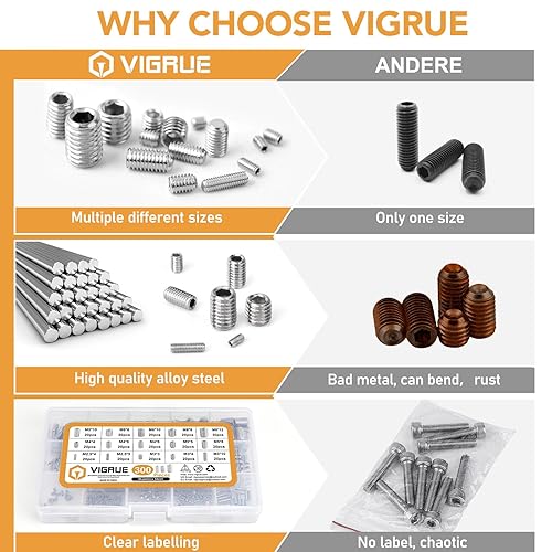 VIGRUE 300 Stück Madenschrauben Sortiment Set Edelstahl M2.5 M3 M4 M5 M6 M8 Madenschrauben/Innensechskant Gewindestifte DIN 913,Sechskantkopf Schrauben mit Schraubenschlüssel für Türgriff, Türklinke
