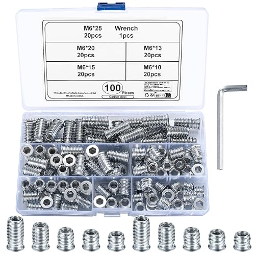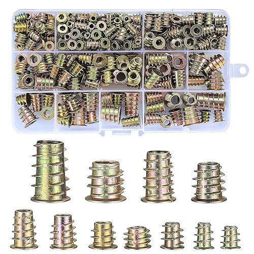 Qeapug 230 Stück Einschraubmutter, M4/M5/M6/M8/M10 Zink-legierung Einschraubmuffen, Innensechskant Mutter, Einschlagmuttern für Holzmöbel Gewindeeinsätze