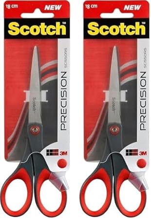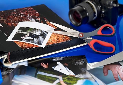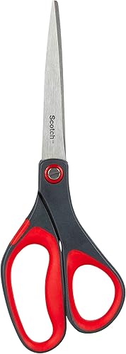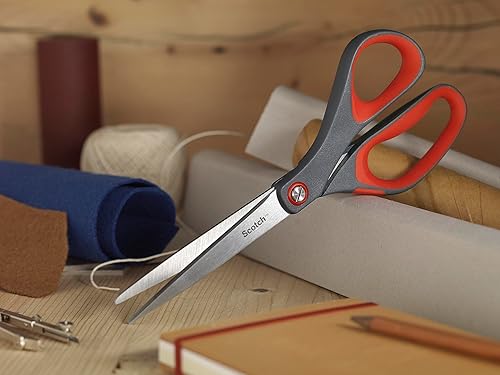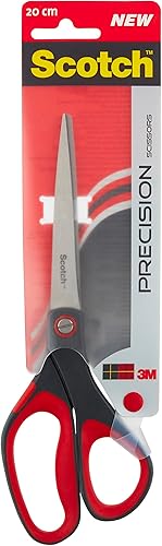Scotch Präzisions-Büroschere mit rostfreien Stahlblättern - 18cm - Ideal für präzises Schneiden, für Rechts- und Linkshänder geeignet - Farbe grau/rot