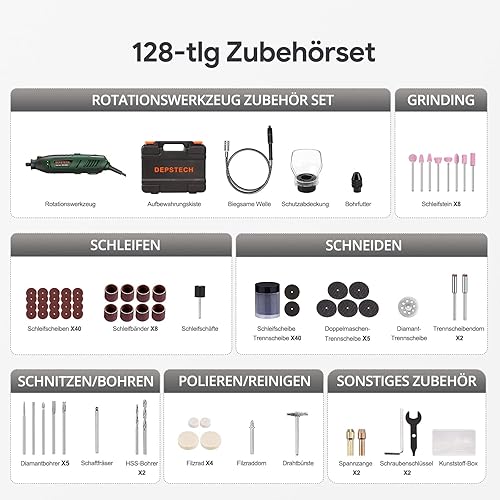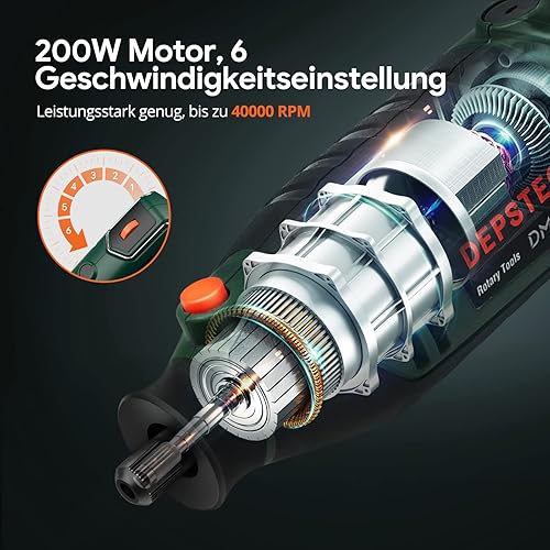 DEPSTECH Multifunktionswerkzeug 200W, Rotationswerkzeug 6 Variable Drehzahl 10000–40000 U/min, Multitool-Set mit 128 Zubehörset für Gravur, Bohren, Schneiden, Schleifen, Gravieren, Polieren, Schärfen