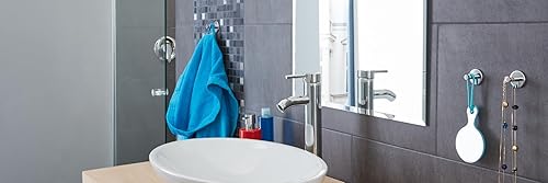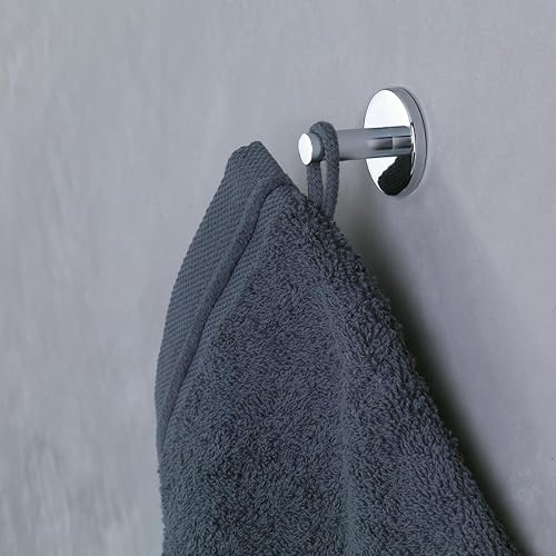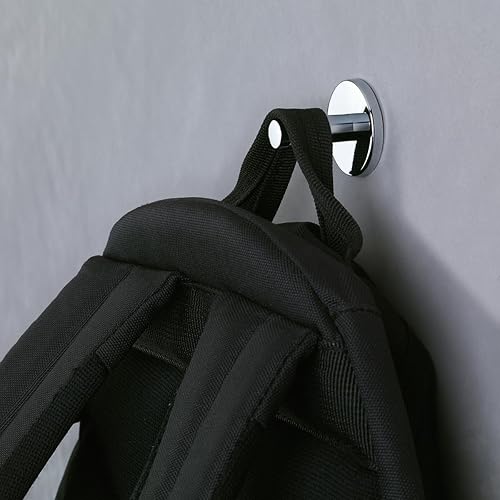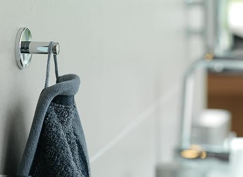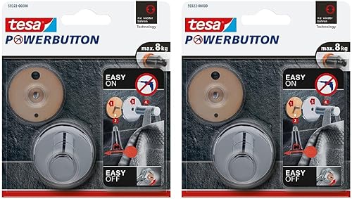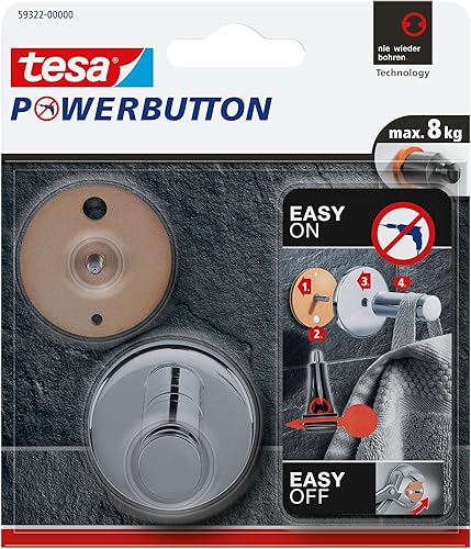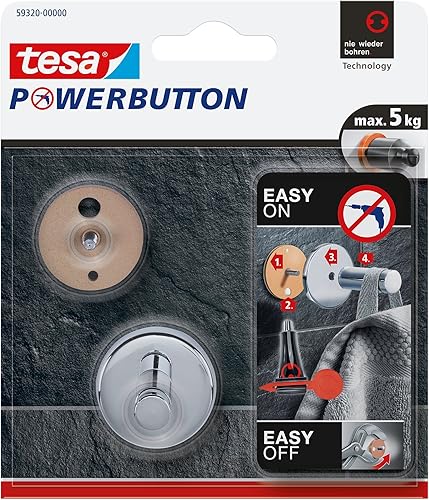 tesa Powerbutton Haken Universal MEDIUM aus verchromtem Metall - selbstklebender Badhaken, runde Form - Handtuchhaken für das Bad - belastbar bis 6 kg
