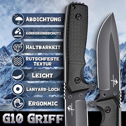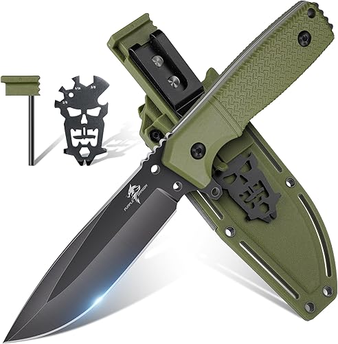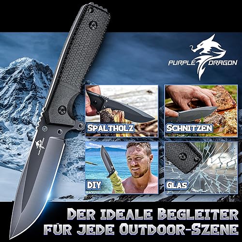 Purple Dragon Grünes Survival Messer mit Kydex Scheide, Full Tang Outdoor Messer Feststehend aus einem Stück D2 Stahl, Survival Messer für Bushcraft Camping, Geschenke für Männer