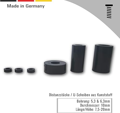OL 50 St. Distanzstücke/U-Scheiben aus Kunststoff Durchmesser 10 mm Länge/Höhe 3 mm Bohrung 5,3 mm