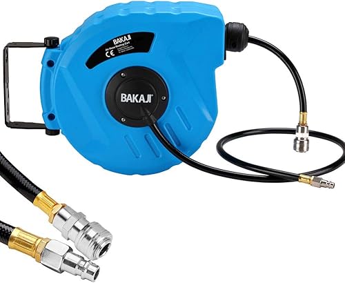 Bakaji 2822725 Schlauchtrommel mit Schlauch, 10 m Anschluss 1/4 Zoll, Befestigung an der Wand