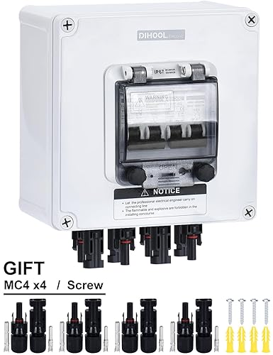 DC Trennschalter PV Anlage DC12V-DC400V 4 String 2 polig 30A IP67 Wasserdichtes Solar Leitungsschutzschalter Sicherungsautomat (4 in 4 out)