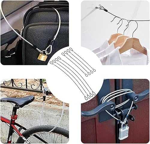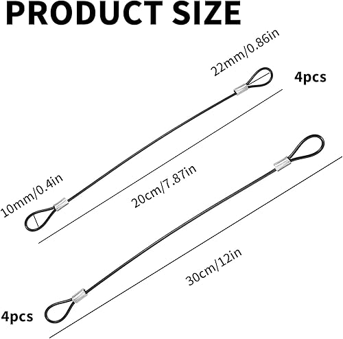 CLKE Sicherheitskabel für den Außenbereich, 20 cm, 30 cm, Edelstahl, Sicherheitskabel, Draht, mit Doppelschlaufe, für Schloss Fahrräder, Gepäck, Außentüren, Bilderrahmen, Schwarz, 8 Stück