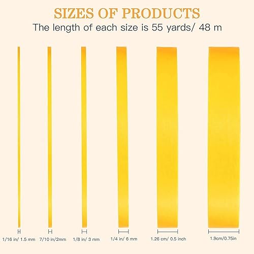 Xusywdm 6 Rollen Tape 1/16,7/10,1/8,1/4,1/2,3/4 X 55 Meter, Fineline Klebeband, Maler Automobil Klebeband