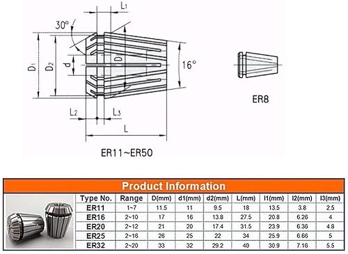 Fafeicy ER11 Spannzangensatz, Federzangenfuttersatz, 15 Stück 1-7 mm, zum CNC-Fräsen und Gravieren, Er-Spannzange
