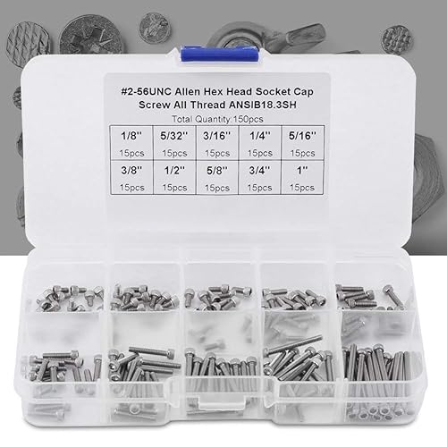 M2 2mm Schrauben Sortiment, 150 Stücke #2-56 UNC Gewinde 9 Länge(1/8'/5/32' 3/16' /1/4' /5/16' /3/8' /1/2' /5/8'/3/4'/1') Metall Innensechskant Schrauben Muttern Sortiment Kit mit Box