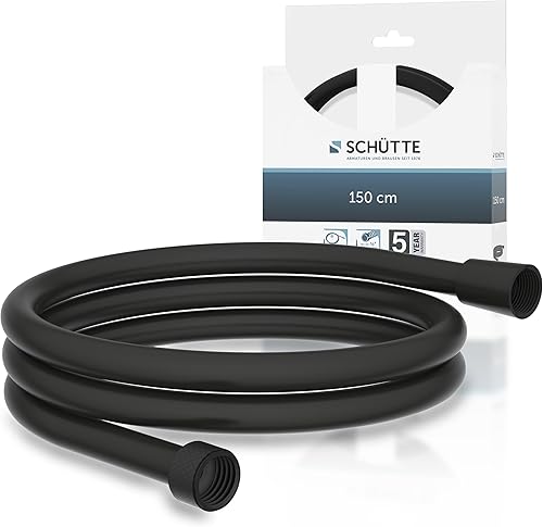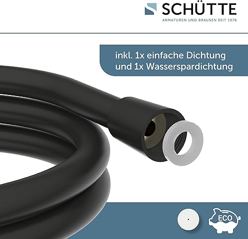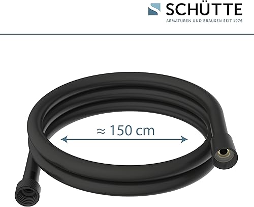 SCHÜTTE Duschschlauch 1,5m | Brauseschlauch mit Verdrehschutz Dusche mit 150cm Länge aus Kunststoff | Duschkopf-Schlauch mit Universalanschluss | Schwarz