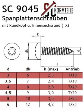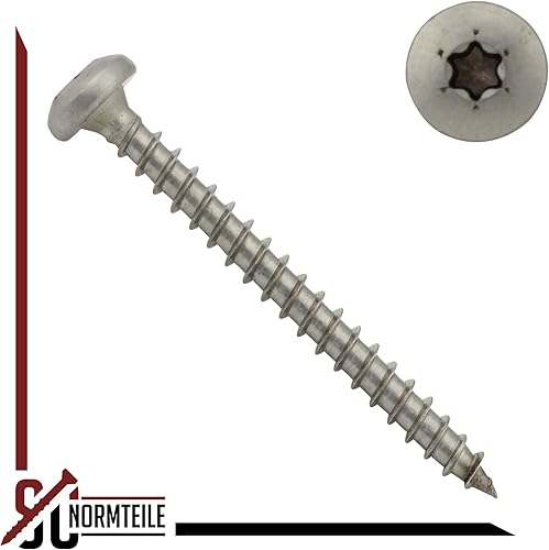 Spanplattenschrauben mit Rundkopf und TX - 5 x 60 mm - (50 Stück) - (verstärkter Kopf, Pan Head, Antrieb: T-25) - Vollgewinde - Edelstahl A2 V2A - SC9045 | SC-Normteile®