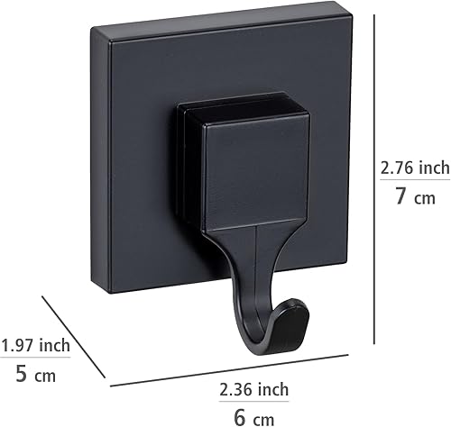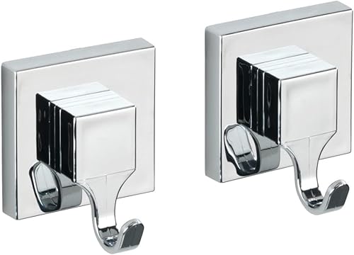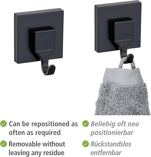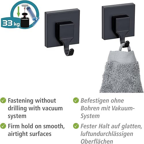 WENKO Vacuum-Loc® Wandhaken Quadro, 2er Set, Handtuchhaken für Badezimmer und Küche, Vakuum-Befestigung – ohne Bohren, Handtuchhalter aus Kunststoff, Maße je Haken: 6 x 7 x 5 cm