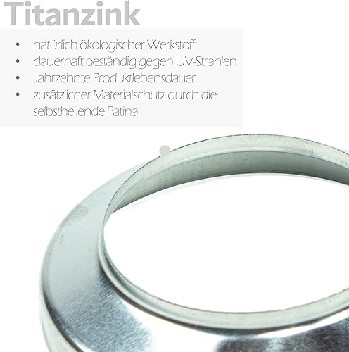 Zink Standrohrkappe 100/116 flach - Rosette für einen sauberen Übergang vom Fallrohr zum Standrohr, Abdeckrosette für Regenrohre aus Titanzink