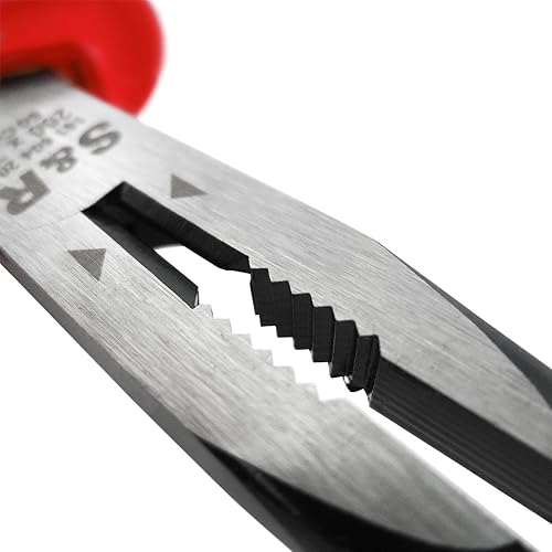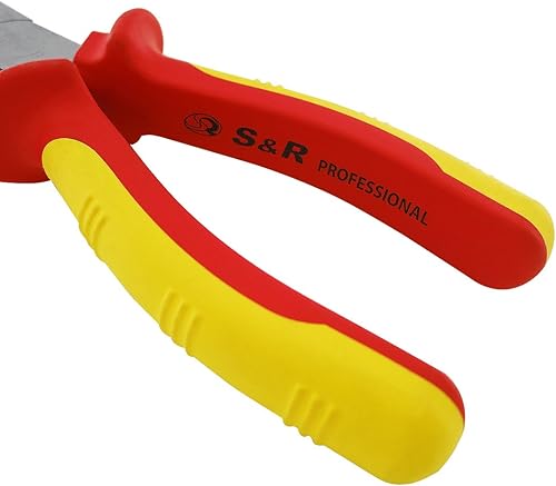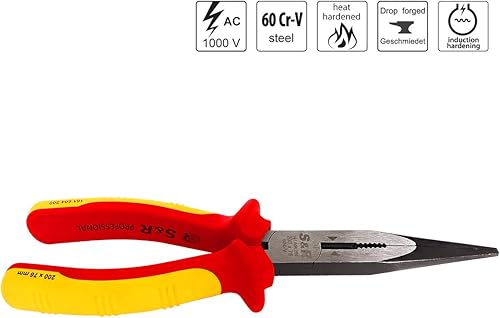 S&R VDE Flachrundzange 200 mm, gerade Spitzzange, 60 CrV hitze- und induktionsgehärtet für professionellen Einsatz, Härte HRC 66, Seitenschneider, 2K-Griff, Abrutschschutz, Storchschnabelzange