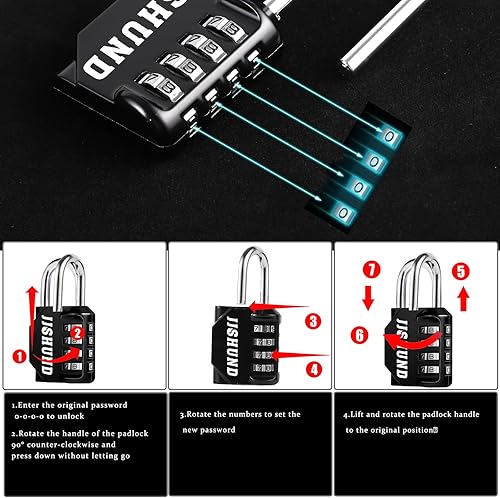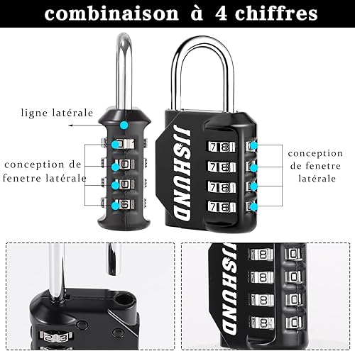2 Stück Vorhängeschloss Zahlenschloss, 4 Stellig Zinklegierung Schloss Mit Zahlencode, Metall Vorhängeschloss mit Zahlencode für Spind Fitnessstudio Werkzeugkasten (Schwarz)