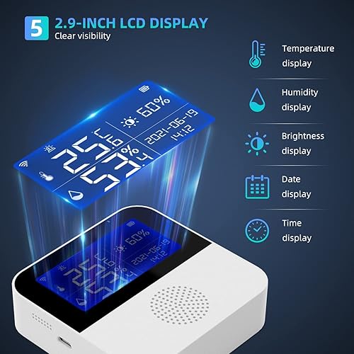 WiFi Temperature Sensor with Waterproof External Probe,Tuya Smart Temperature Humidity Monitor with Backlight LCD Display,Buzzer Alarm &App Notification Alert,Remote Monitor for Incubator Wine Cellar
