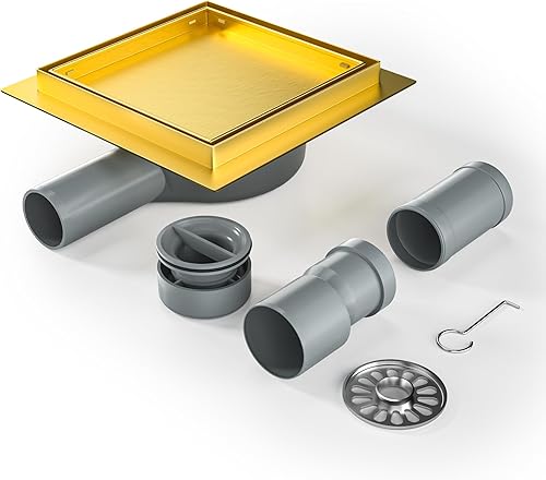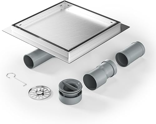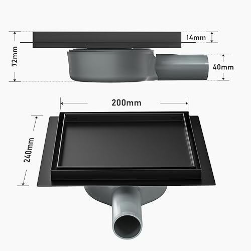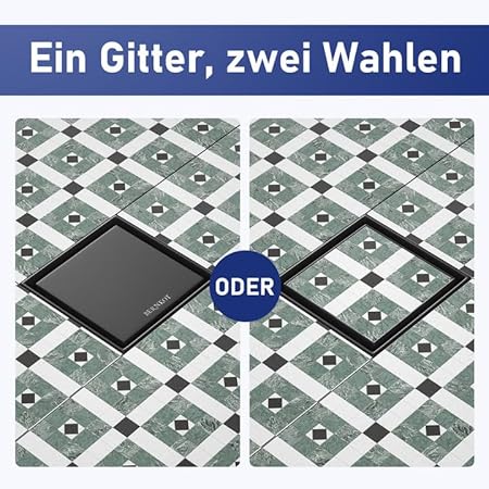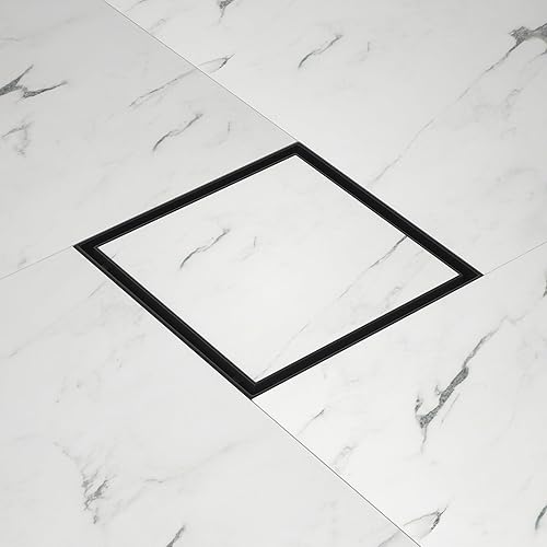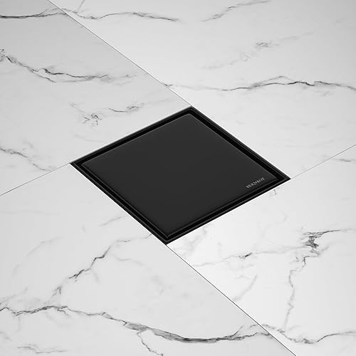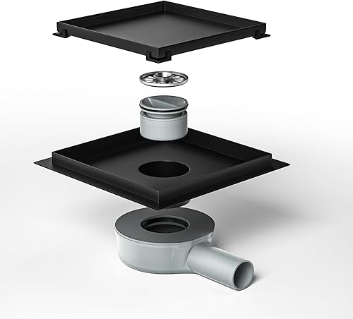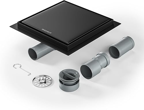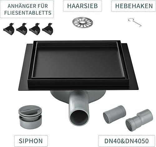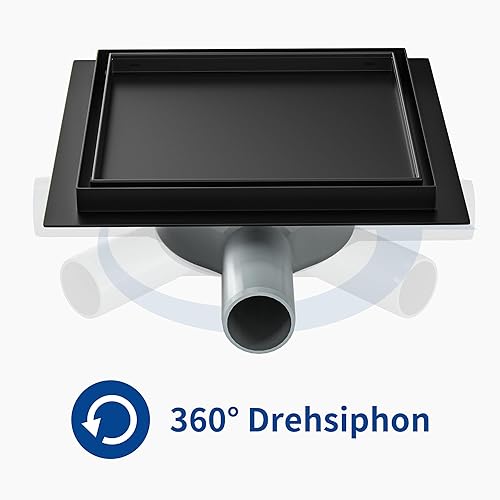 Bernkot Duschrinne Quadrat 15 * 15cm, 360° Siphon mit Geruchsstop und Haarsieb 2 in1 Befliesbar Edelstahl Ablaufrinne Bodenablauf Duschablauf sehr flach DN50 DN40,Schwarz, 15CM-SCHWARZ